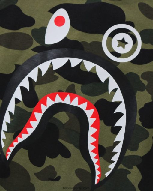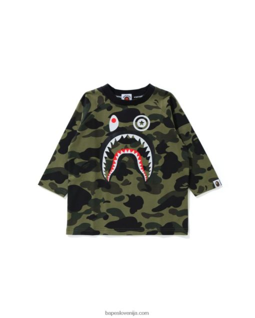 1. maskirna majica s 3/4 rokavi v obliki morskega psa otroci A Bathing Ape vojaško zelena 8FLDNH1787