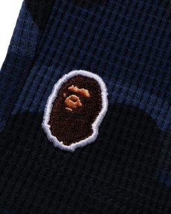 majica z dolgimi rokavi s potiskom logotipa moški A Bathing Ape mornarsko modra 8FLDNH352