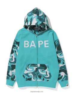 prevelik pulover s kapuco s polno zadrgo iz marmorja ženske A Bathing Ape kovnica 8FLDNH1012